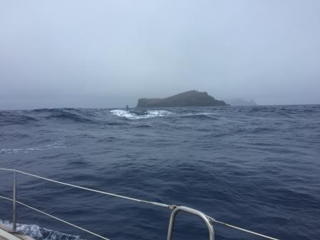 Es geht mächtig dahin, Delphine kreuzen unseren Weg und erfreuen uns mit ihrer Anwesenheit. Doch die Freude hält nicht lange an, da plötzlich am Ruder ein Knarren und ein Krachen zu verspüren ist. Das Problem ist alsbald entdeckt, die Schrauben, vom neuen Autopiloten (11/2018) haben sich gelöst. Wir müssen beidrehen, da wir so manövrierunfähig sind und den Autopiloten abmontieren. Ab nun heißt es per Hand steuern. Wir wechseln uns alle drei Stunden ab, wo es bei 33 Knoten Spitzenwind (Top-Speed 11,2) und Monsterwelle erheblich ans Eingemachte geht.