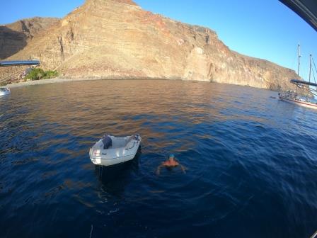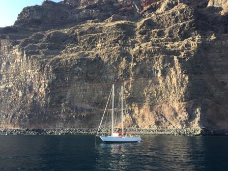 Der Wind ist für Montag mit 15 Knoten vorausgesagt, d.h. in den Accelerations Zones müssen wir mit bis zu 25 Knoten rechnen (was sich auch bewahrheitet) und so lösen wir die Leinen und machen uns auf den Weg nach Gomera. Es wird wieder ein schöner Segeltag, an dem wir um 19:15 den Anker in der Bucht Valle Gran Rey (Vueltas) auf La Gomera fallen lassen.