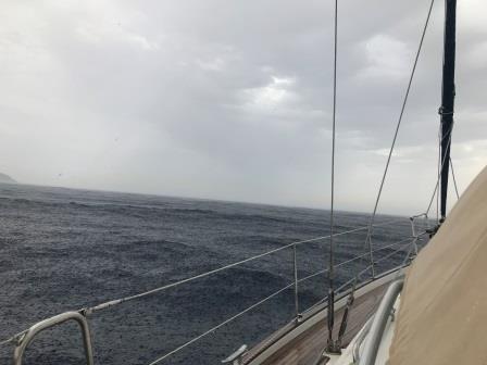 Am späten Vormittag gehen wir Anker auf und halten Kurs auf Gran Canaria. Nach mehreren kurzen, aber heftigen Schauern wird es zwar eine Motorpartie, doch die eineinhalb Stunden in den „Accelerations Zones“, haben wir den Wind 15 Knoten halb und machen dabei 5 Knoten Fahrt.