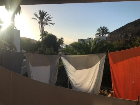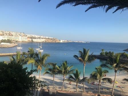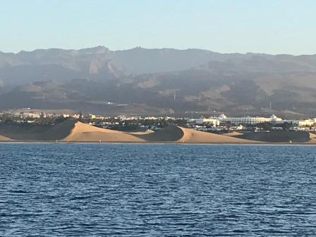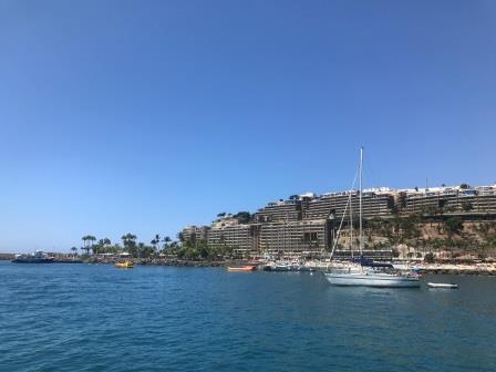 Am Freitag geht es weiter südöstlich, unser derzeitiges Etappenziel von fünf Meilen behalten wir bei und ankern vorm Strand Pasito Blanco östlich von Maspalomas. Am Nachmittag fahren wir mit dem Dinghi an Land und erkunden die Umgebung. Es ist alles sehr touristisch hier, viele Hotels und Einkaufszentren. Am Rückweg lassen wir Footloose an Backbord liegen und steuern in den Hafen auf einen Sundowner.