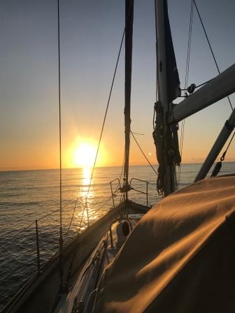 Wir stellen uns den Wecker, lichten den Anker am nächsten Tag kurz vor Sonnenaufgang um 07:40 und halten 75°ENE Kurs auf Fuerteventura. Es liegen ca. 70 Seemeilen vor uns.