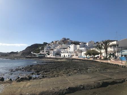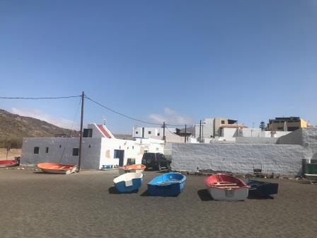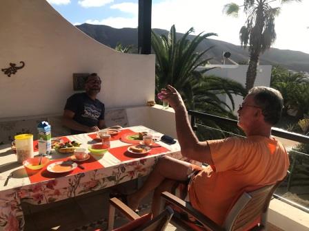 Am darauffolgenden Morgen sind wir ganz alleine in der Bucht. Da wir jedoch mit unseren Freunden, Brigitte und Erich, ein Treffen vereinbart haben, lichten wir abermals den Anker, um am Nachmittag im Hafen von Gran Tarajal anzulegen. Nach dem Anmelden im Hafenbüro wechseln wir den Platz, hier liegen wir jetzt deutlich ruhiger und können das Schiff getrost auch ein paar Tage alleine liegen lassen. Am Abend wird dann endlich, in Giniginamar bei Thunfisch in Sesamkruste und ein paar Achterl Rosato, Wiedersehen gefeiert.