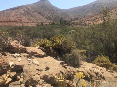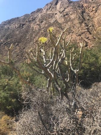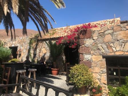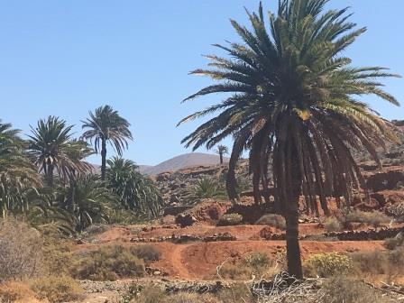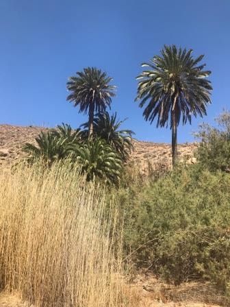 Im Casa de la Naturaleza in Vega de Rio Palmas stärken wir uns um dann wieder zurück durch das Palmental und die enge Felsenschlucht zum Ausgangspunkt zurückzukehren. Die Dattelpalmen entlang des Barranco de las Penitas nehmen sich inmitten der schroffen und teils nackten Berge des Zentralmassivs wie eine Oase aus.