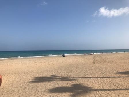 …..und Corralejo im Norden. Wir setzen uns in eine Strandbar und schauen rüber nach Lanzarotte und auf die kleine Isla de Lobos.