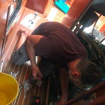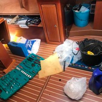 …und weil Segeln auch Arbeit bedeutet, wird am Samstag dann der fällige Öl- und Filterwechsel am Motor durchgeführt, Brot gebacken und wieder mal an Bord gekocht.