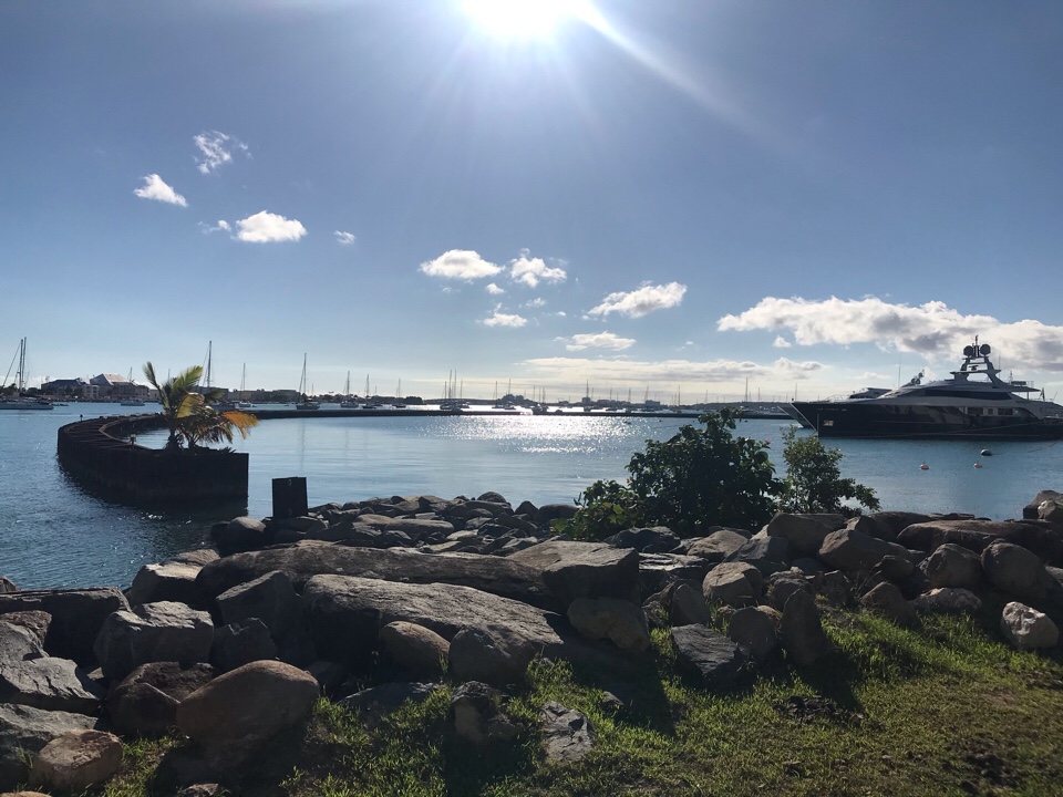 Next Island – next Stop Saint Martin oder wie die Holländer sagen Sint Maarten. Wir entscheiden uns für den französischen Teil der Insel und lassen den Anker in der Bucht Marigot vor der Marina Fort Louis in den Sand fallen. Das Einklarieren erfolgt auf einem PC, ist äußerst unkompliziert und kostet €15,-. Nun sind wir offiziell in Frankreich, d.h. wenn wir mit dem Boot in Sint Maarten ankern wollen, müssten wir in Frankreich ausklarieren und in Sint Maarten wieder einklarieren. Das ersparen wir uns und unternehmen mit dem Dingi Tags darauf eine kleine Bootsfahrt. Wir fahren an vielen gestrandeten Schiffen vorbei, die seit dem letzten Hurrican 2017 noch nicht weggeräumt wurden.