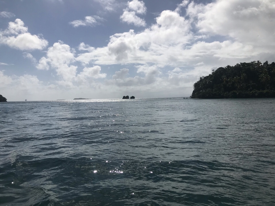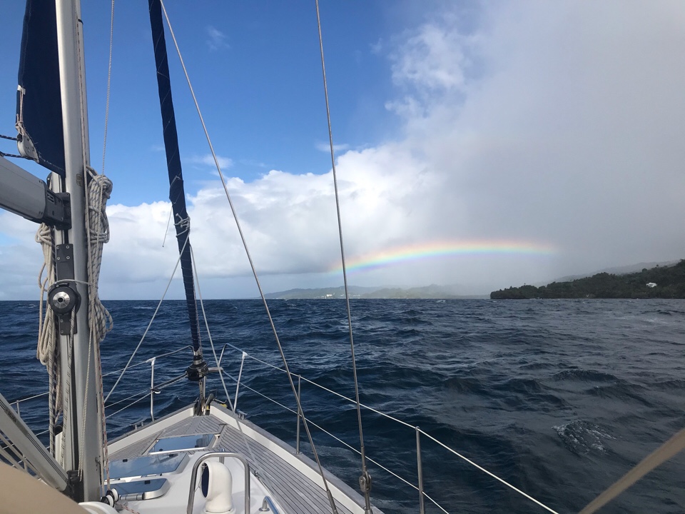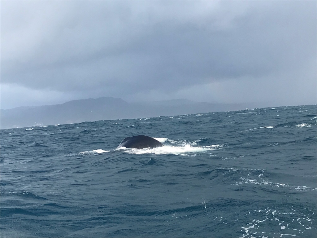 Bei Sonnenaufgang um 07:06 haben wir die Einfahrt in die Bucht Samana erreicht. Der Wind kommt immer achterlicher und wir setzen unsere Genua voll. Wir sehen aus der Ferne immer wieder den Blas der Buckelwale um dann diese Riesen der Meere aus nächster Nähe beobachten zu dürfen. Wir sind ganz alleine mit ihnen, kein Schiff weit und breit. Die Touristen werden erst später zum Whalewatching rausgefahren. „Haut wie Gans“ würde Markus Schwester Michi jetzt sagen, so fühlen wir uns.