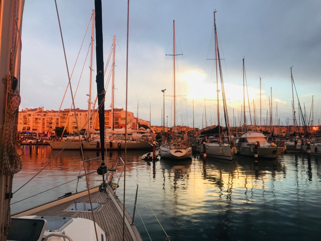 Der Wind hat ziemlich aufgefrischt und so legen wir, mit Eindampfen in die Vorspring, ab. Das Wetter beschert uns ein schönes am Wind segeln und nach acht Stunden legen wir gleich nach der Einfahrt, am Fingersteg beim Office, im Port Cap d’Agde an.