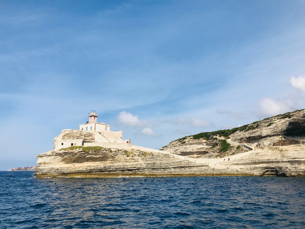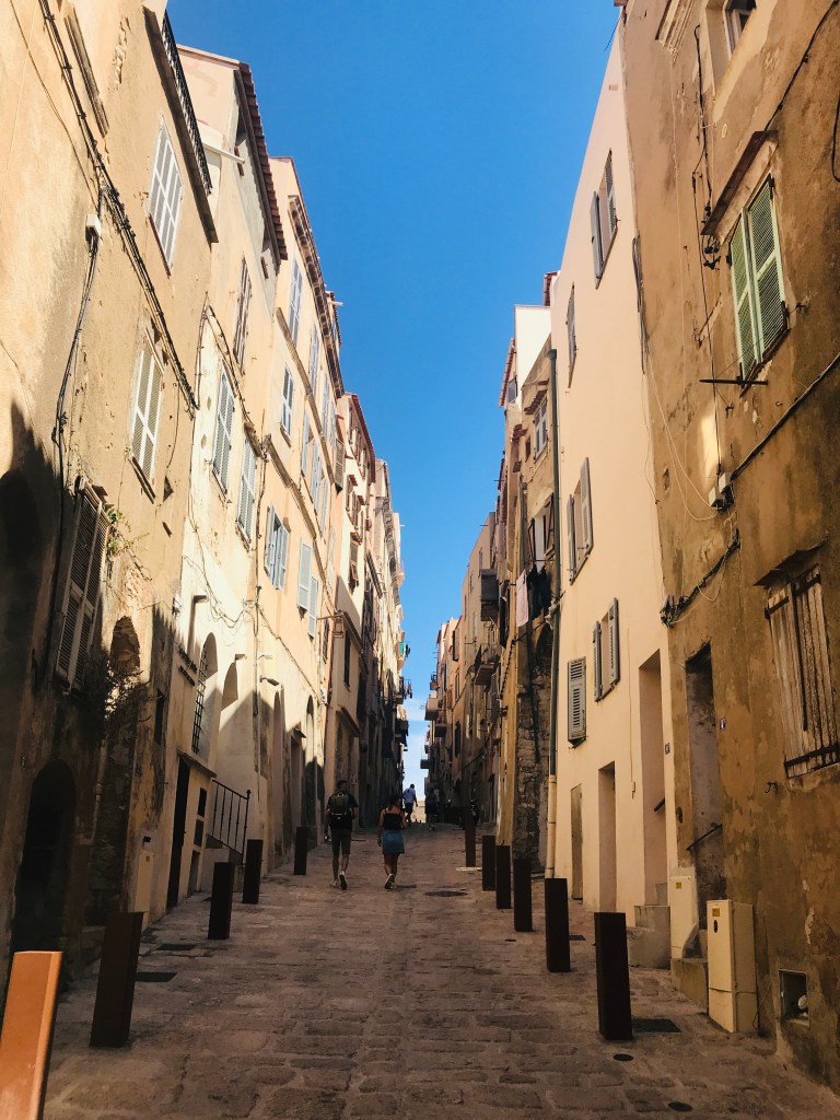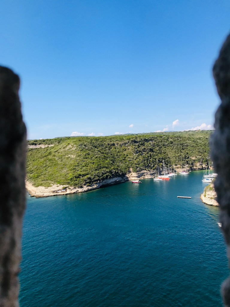 Bonifacio die Hafenstadt an der südlichen Spitze von Korsika. In 60 Meter Höhe thront die Stadt auf einem Kalksteinplateau, an dem im wahrsten Sinne des Wortes die Zeit genagt hat. Das Meer hat die Felsen derart unterspült , dass die auf ihnen erbauten Häuser beinahe zu schweben scheinen.