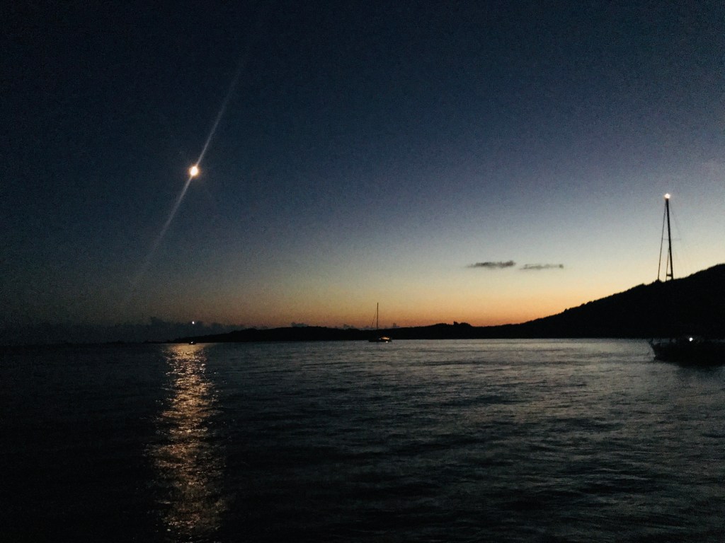 Wir bezahlen 25€ für die Boje in Porto Pollo und legen nach dem Frühstück ab. Vor dem Wind segeln wir mit gebäumtem Vorsegel in die Bucht Anse de Cheranu. Der Wind frischt gegen Abend nochmals auf aber die Nacht wird dann wieder sehr ruhig.