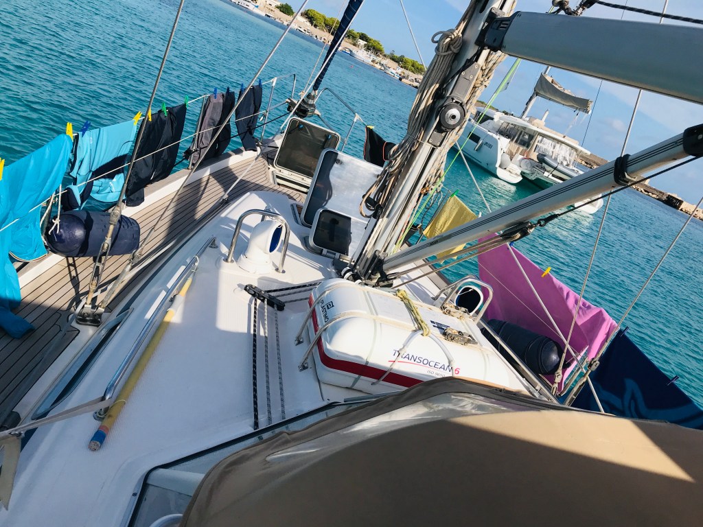 Bei Ankunft in der großen Ankerbucht San Vito, zeigen sich bereits starke Übermüdungserscheinungen und wir laufen auf eine Sandbank vor der Marina auf. Sie ist mit 2 Bojen markiert, welche man in der Nacht aber nicht sieht. Markus merkt es jedoch sofort und legt den Retourgang ein und sind auch schon wieder frei. Nach dem Schreck, verzichten wir auf den Luxus Marina und werfen den Anker zwischen einem Katamaran und einem anderen Segler. Um 22:15 wird der Motor abgestellt, nach einem Ichnusa non Filtrata mit kalter Jause, hängen wir die nassen Kleidungsstücke in den Motorraum und fallen nach zwei Tagen Schlafentzug ins Bett. Am nächsten Morgen werden wir mit diesem Ausblick belohnt.