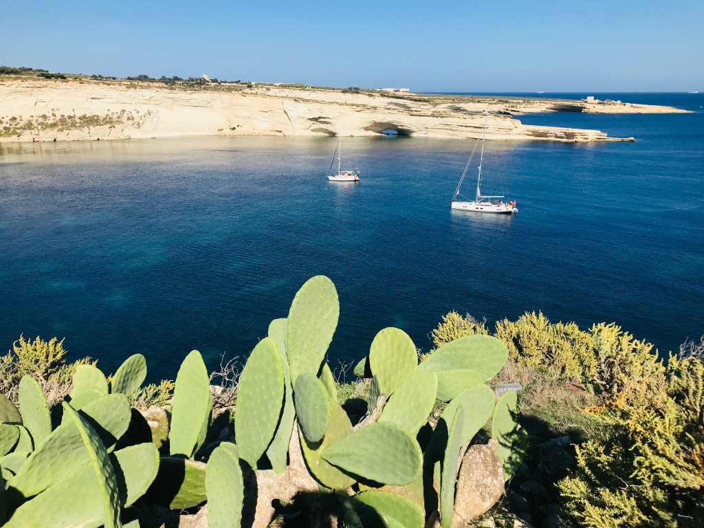Eigentlich hatten wir im Plan, in die 1,5 Seemeilen entfernte blaue Bucht zu fahren, diese ist jedoch dermaßen überfüllt, daher lassen wir Comino backbord liegen und finden einen Ankerplatz im nördlichen Teil von Malta.