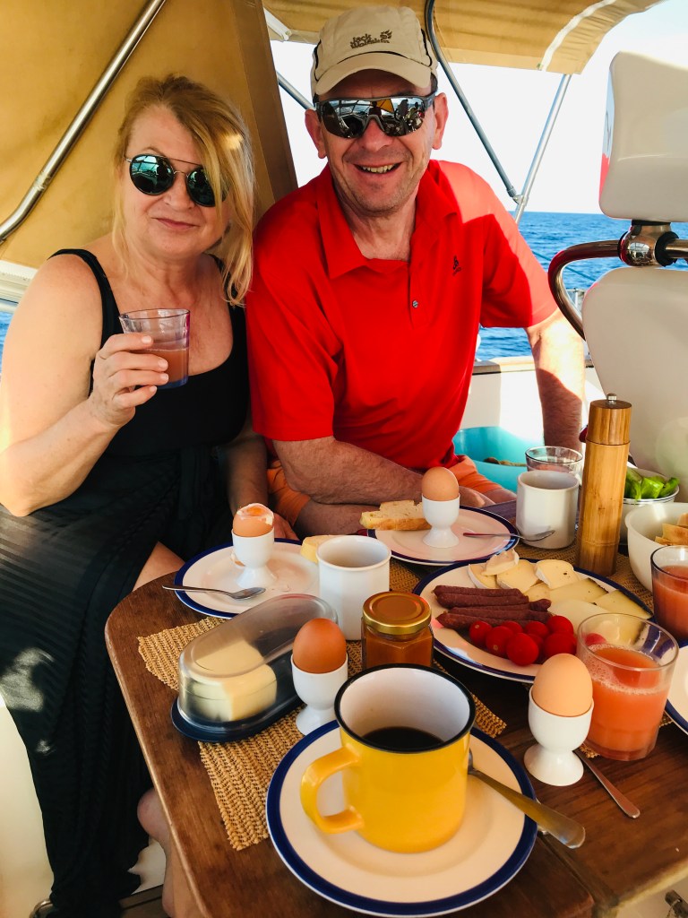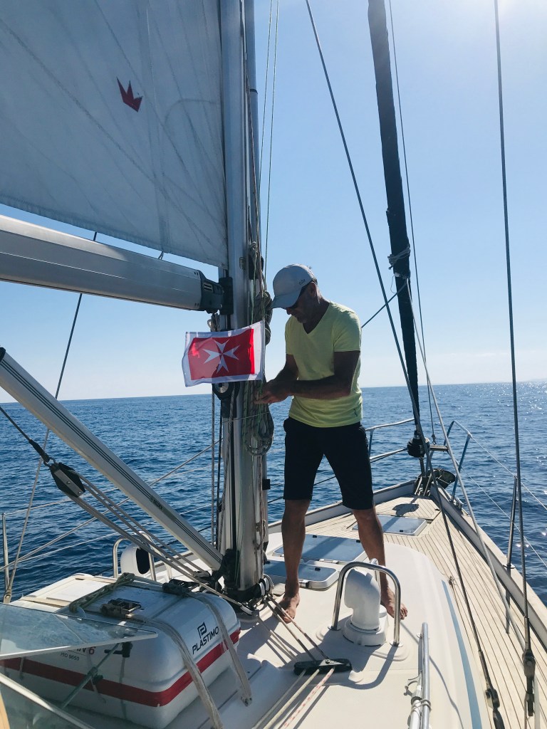 Unter dem Motto: „Besser wenig Wind als zuviel“, motoren wir, mit Unterstützung des Großsegels, was immerhin 0,2 Knoten Fahrt bringt, Richtung Gozo. Ein ordentliches Frühstück darf nicht fehlen, die Zeit verfliegt im Nu, haben wir uns doch schon so lange nicht gesehen und uns einiges zu erzählen.
