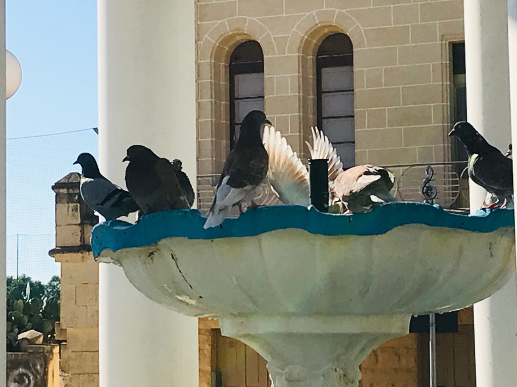 Da wir am Vortag nicht zu unseren 10.000 Schritten gekommen sind, werden wir das noch vor dem Ablegen erledigen. Im nahe gelegenen Ghajnsielem decken wir uns mit frischem Gebäck, Gemüse und Obst ein. Es bleibt auch noch Zeit für einen Cappucino, mit Blick auf die wunderschöne Lourdes-Kapelle.
