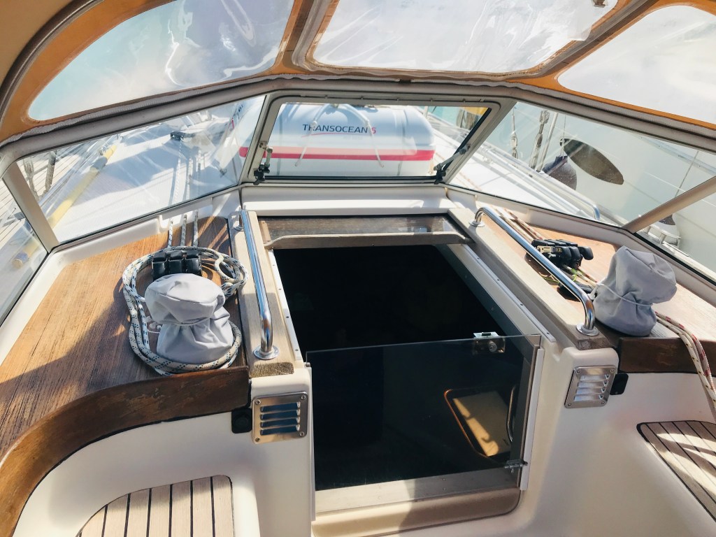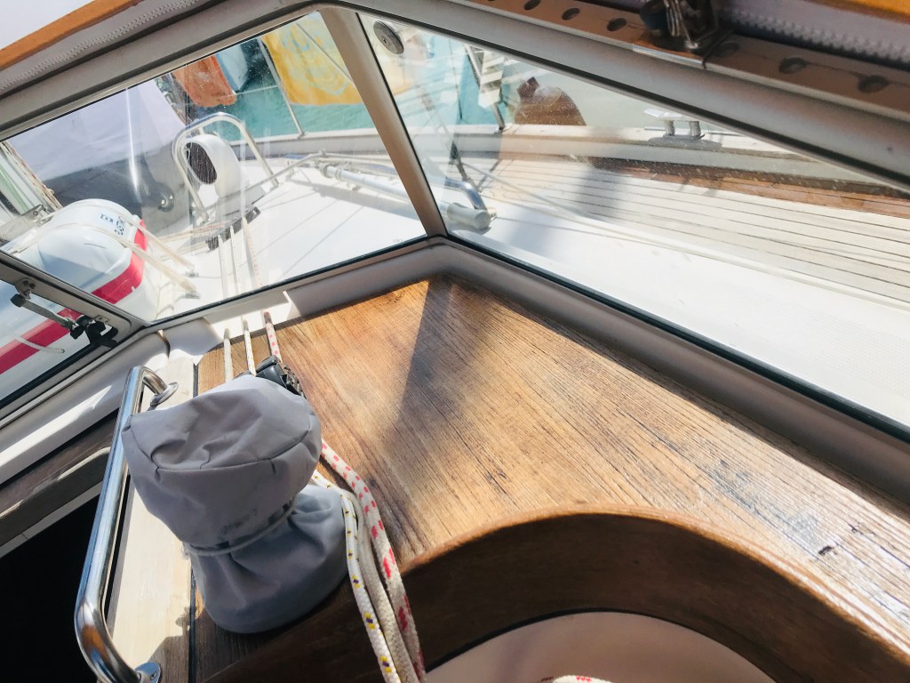 Dafür konnte Markus unter der Sprayhood das Holz mit Bootslack versiegeln – schaut aus wie neu :-).