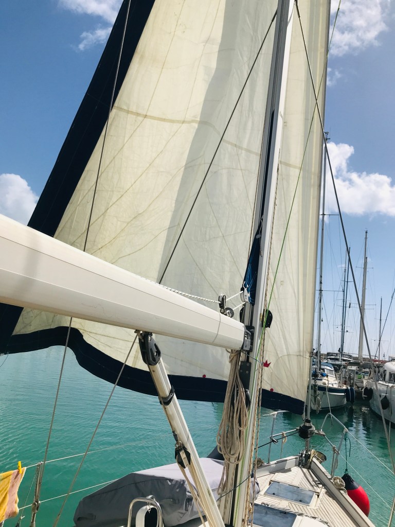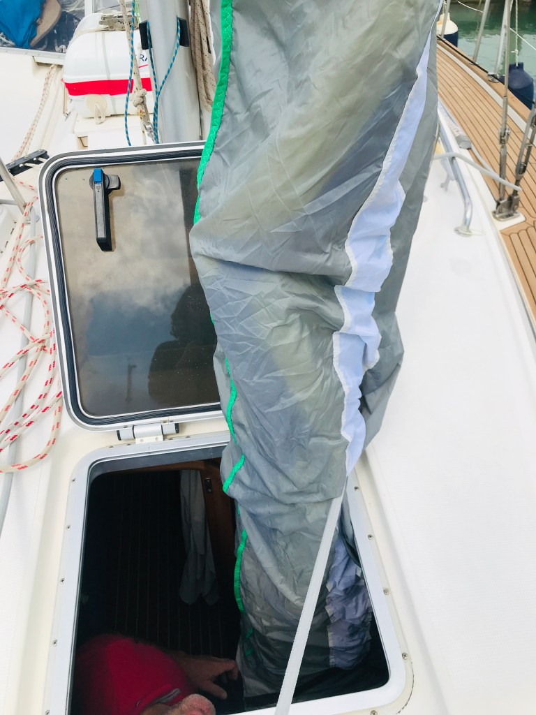 Die Polsterung wurde bereits vor zwei Wochen von einer Firma aus Ragusa professionell gereinigt. Die Heckbeleuchtung von Markus persönlich unter die Lupe genommen und repariert und die Genua von uns beiden angeschlagen.