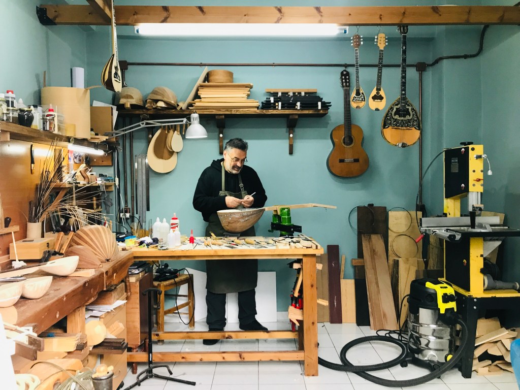 Wir bleiben noch einen Tag und spazieren in die Oberstadt, hier befinden sich Reste einer byzantinischen Festungsanlage. Leider ist uns der Blick von der Burganlage auf die Stadt und das Meer verwehrt, da noch geschlossen ist. Dafür kehren wir auf eine kleine Jause in ein uriges Lokal ein und erwerben für wenig Geld, Manuri. Das ist Schafkäse, ähnlich wie Feta nur nicht so salzig. Außerdem können wir einem Mandolinenbauer, durch ein Fenster, bei seinem Handwerk zusehen.