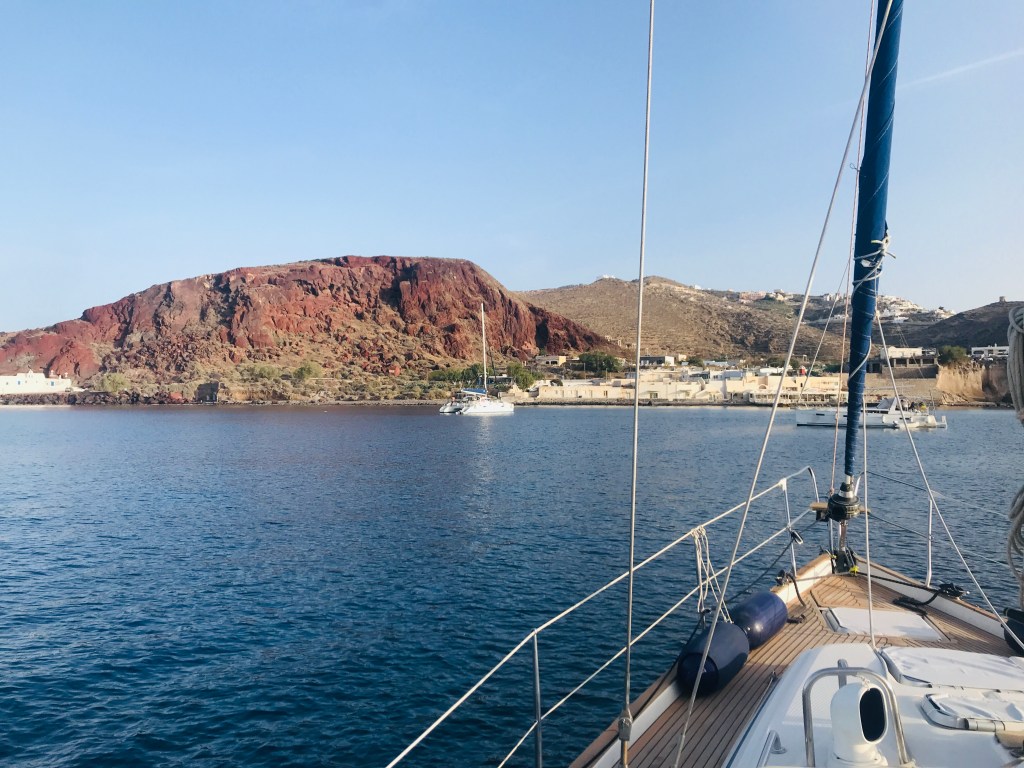 Nach einer nicht so angenehmen Nacht, viel Wind und zuviel Prosecco ;-), segeln wir am 10.05.2023 mit halben Wind bei 4-5 Bft nach Milos. Wir ankern in Adamas vor dem Haupthafen und legen uns nächsten Tag an die Außenmole der Marina. Dass letzte mal hatten wir Landstrom in Bathy auf Meganisi, vor ca. einem Monat.