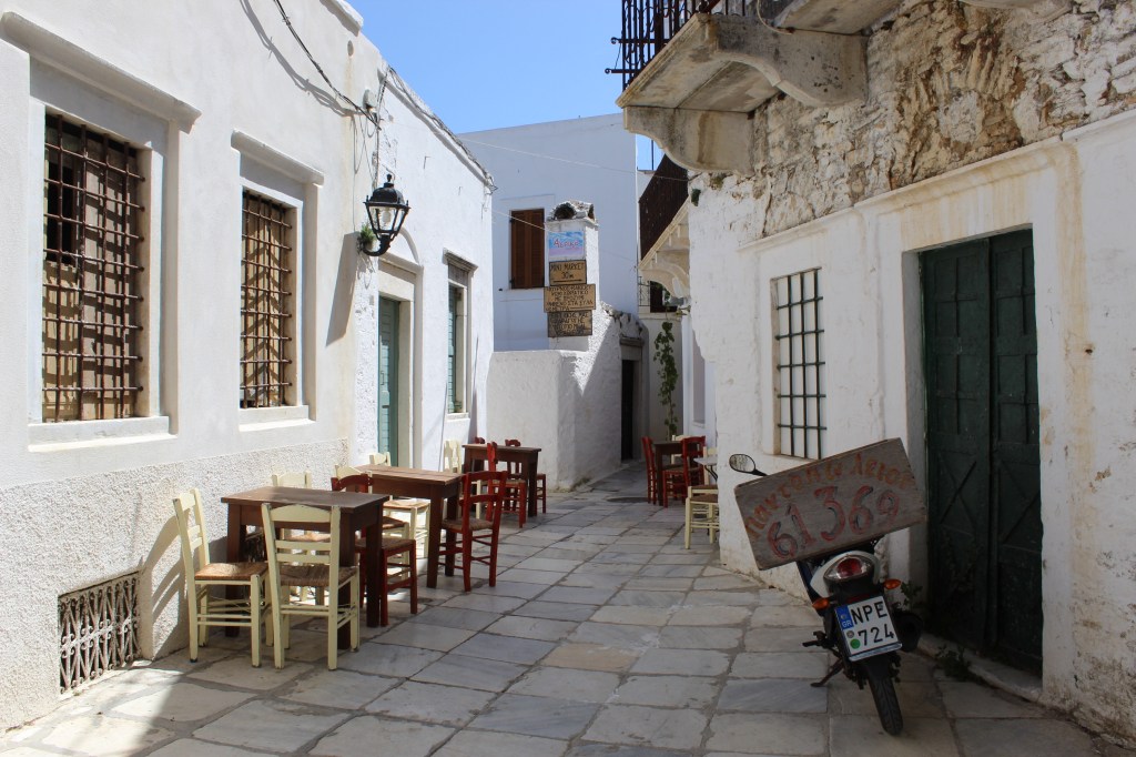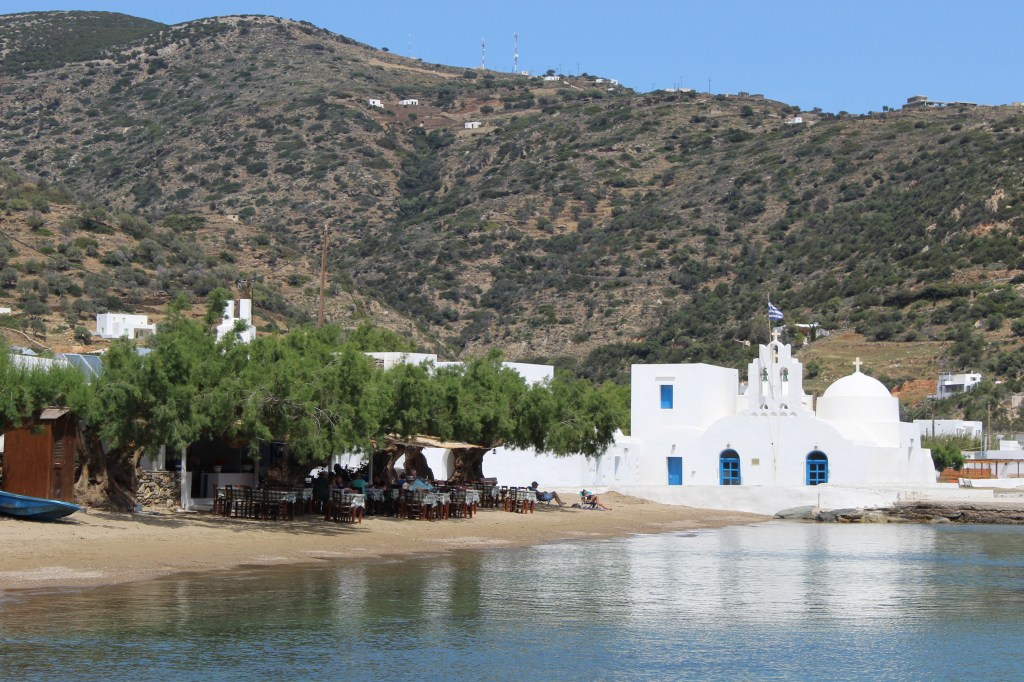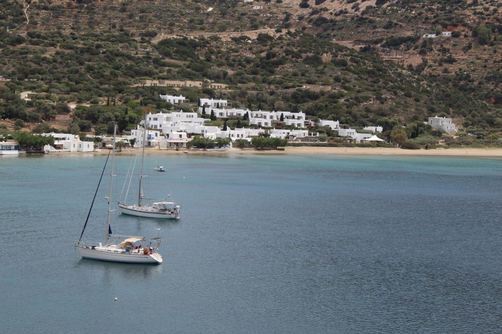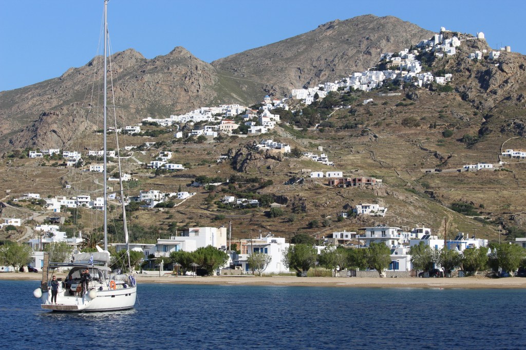 Bei der Ankunft in der malerischen Bucht von Livadi sieht man von weitem die dominierende Chora, einem der wohl schönsten mittelalterlichen Dörfer der Kykladen.