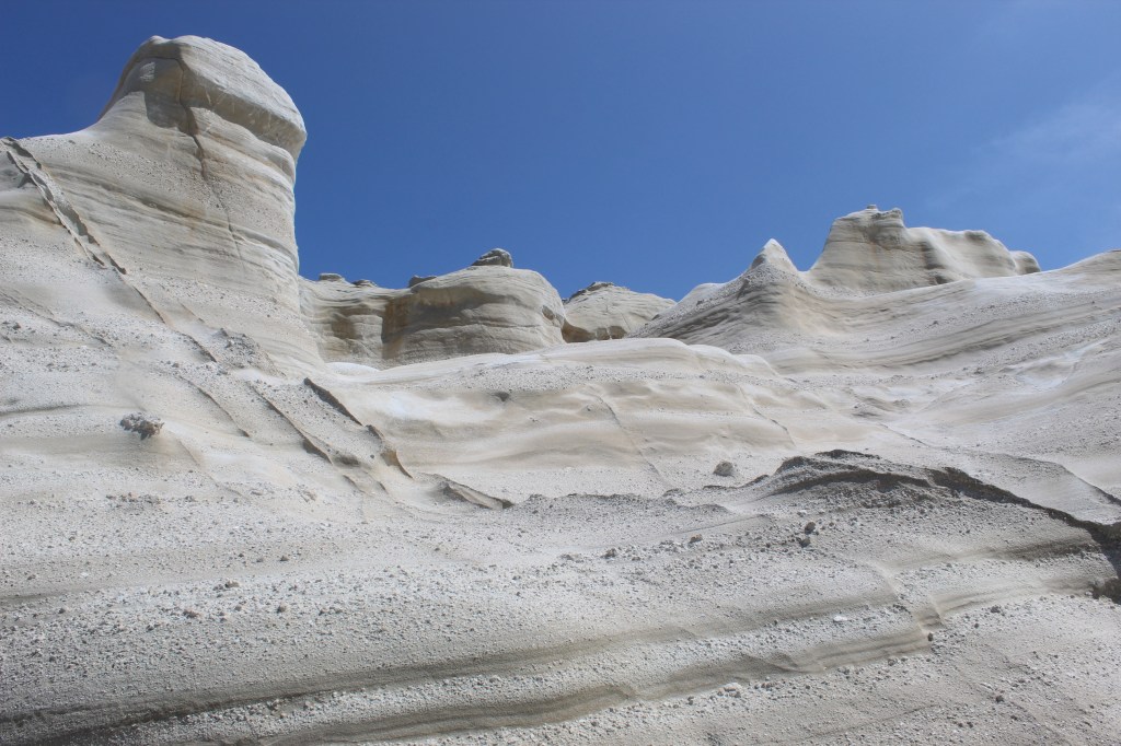 Sarakiniko ist wohl der bekannteste Strand von Milos mit seinen weißen Felsen und kristallblauem Wasser.