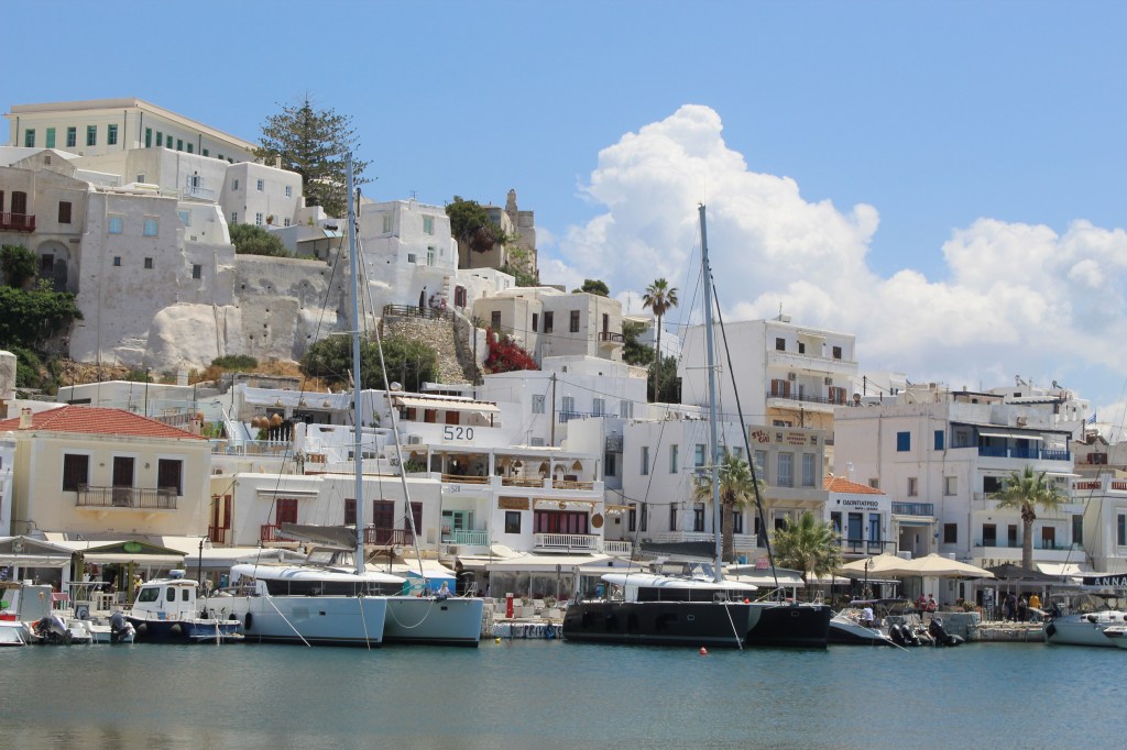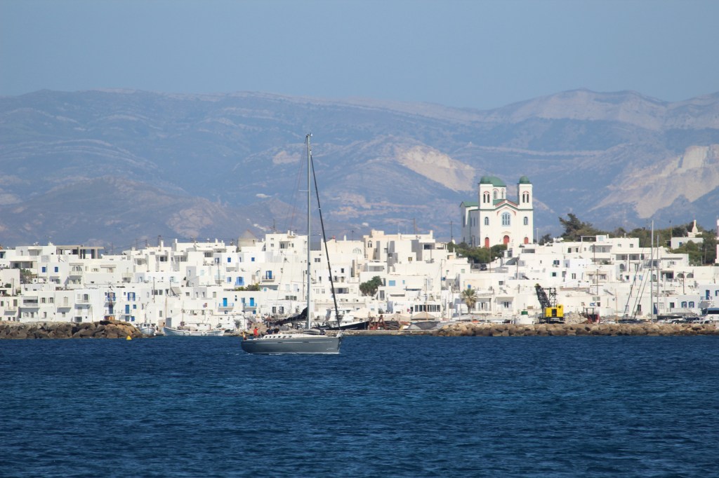 Am Rückweg nehmen wir die Küstenstraße im Norden. Ein Spaziergang durch die Gassen der Chora und ein ausgezeichnetes Abendessen im „Dal Professore“ runden den Tag ab. Sollten wir Naxos noch einmal ansteuern, nehmen wir die Ankerbucht vor den Fähranlegern. Hier liegt man gut geschützt vor den vorherrschenden Winden.