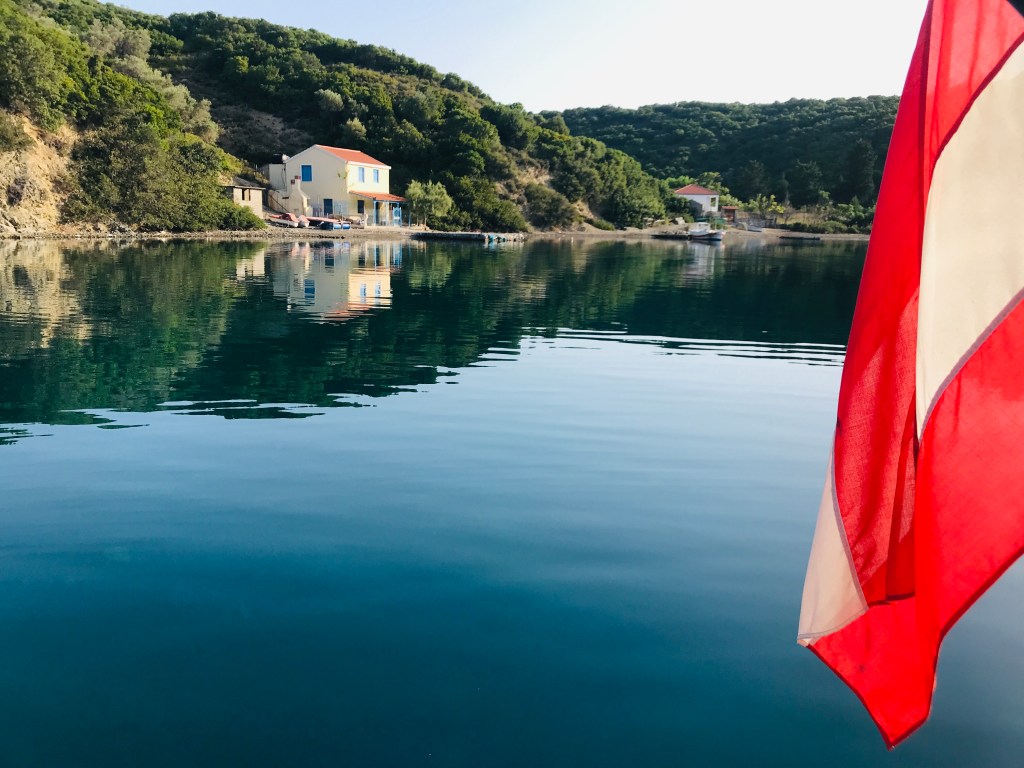Wir nehmen Kurs auf eine Ankerbucht im Süden. Nach einer Stunde unter Motor kommt plötzlich nur mehr Rauch Inderin Kühlwasser aus dem Auspuff. Wir schalten die Maschine aus und setzen das Großsegel um Manövrieren zu können. Der Dichtring vom Kühlflüssigkeitsbehältnis ist locker. Nach einer Viertelstunde ist der Schaden behoben und der Motor spuckt wieder.