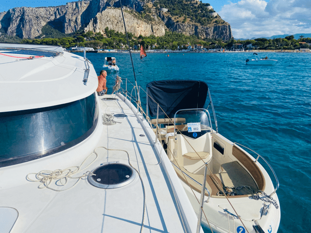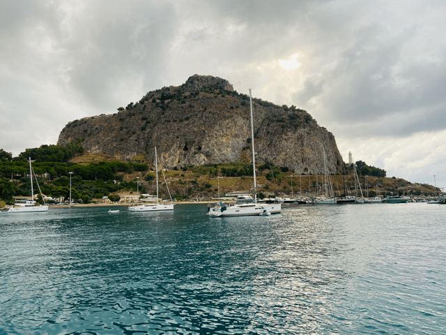 Auf unserer Fahrt von Milazzo nach Cefalu wechseln wir ständig zwischen Segel setzen und bergen. Da die Welle sehr hoch ist kommen wir mit voller Besegelung und Motorunterstützung am Abend in Cefalu an. Wir ankern vor der Marina in Sand und erfreuen uns an diesen unglaublichen Felsformationen rundherum.