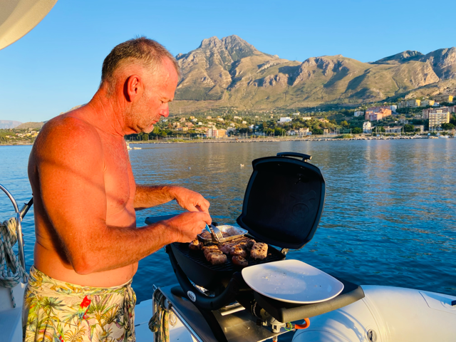 In Mondello verbringen wir unsere lauteste und unruhigste Nacht bisher. Am Nachmittag hängen wir kurzzeitig eine Motoryacht an unsere Seite. Das junge Pärchen aus Frankreich ist an Land geschwommen, der Anker hat nicht gehalten. Die Freude ist groß, als der junge Mann auch noch die verlorengegangene Tüte mit GoPro und Messina Bier mit unseren Flossen bergen kann. Sie kommen nochmals zurück mit „Arancine di Sicilia“ (gefüllte Reisbällchen“) und zwei Flaschen Moretti Bier als Dankeschön :-).