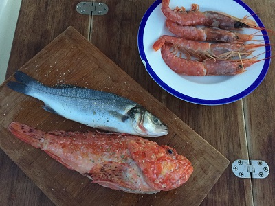 Es wird uns nicht fad!!!! Für das Abendessen wurden in der nahen Pescheria zwei Goldbrassen erstanden.