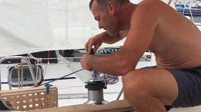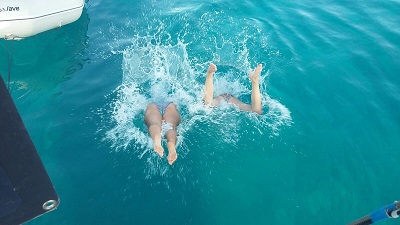 Donnerstag 20. Juli: Vor dem Auslaufen noch ein bisschen Morgensport – und rauf in den Mast…..Lampe schreit nach Kontaktspray ;-)…. Wassertanks werden vollgefüllt und los gehts….doch auf dem Weg zu unserem nächsten Ziel die nächste böse Überraschung – Bilge wieder voll mit Wasser – jedoch Entwarnung – es ist Süßwasser und stammt höchstwahrscheinlich von unserem vorderen Wassertank. Im nächsten Hafen werden wir der Sache auf den Grund gehen.