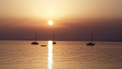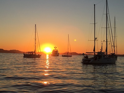 21. – 22. August: Bleiben noch einen Tag in der Bucht von Cala di Volpe und fahren zum Abendessen mit dem Dinghi an Land. Dank Google Maps finden wir ein gutes Restaurant. Am Dienstag schlagen wir uns gegen die noch mächtige Nordwelle nach Porto Cervo durch und geniessen dort eine Stunde an einer Boje im Hafen. Danach geht es weiter in die nächste Ankerbucht – Porto Liscia, welche am Nachmittag noch recht überfüllt ist, aber gegen Abend sehr einsam wird. Mit einem wunderschönen Sonnenuntergang verabschiedet sich auch dieser Tag.