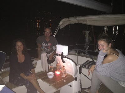 6. – 8. August: Sonntag verlässt uns Babsi zeitig in der Früh, sie geniesst nochmal den Sonnenaufgang und Markus bringt sie mit dem Dinghi an Land. Wir reisen weiter Richtung Südwesten, wo wir einen schönen Ankerplatz für die Nacht finden – Capo di Pula. Am nächsten Tag geht es wieder zurück nach Porto Piccolo. Wir erleben an diesem Abend eine partielle Mondfindernis bei sternenklarer Nacht. Dienstag Mittag ist es dann auch bei Hannah soweit. Sie fliegt heim, sie wird uns fehlen. Nun zu viert, lichten wir den Anker und segeln nach Villasimius.
