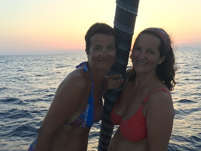 Freitag 4. August: Der Tag, an dem drei überwutzelte Meerjungfrauen an Land gespült wurden 🙂 Von der 3 Sterne Marina del Sole geht es weiter in eine Bucht zum Baden und Stand-up-Paddeln. Über Nacht müssen wir uns aber eine andere Bucht suchen, in der wir geschützt liegen können. Eine göttliche Fügung! Sonst hätten wir nicht die drei Meerjungfrauen gefunden. Letztendlich entschließen sie sich dazu, ein Leben als Mensch weiterzuführen, um ihren Lastern fröhnen zu können (Aperol-Sprizz und Ichnusa sind leider doch zu gut!). Zuletzt werden wir mit einem wunderschönen Sonnenuntergang belohnt und dingeln zurück zur Footloose.