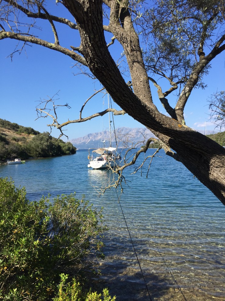 Samstag 8. Juli: Gestriger Nachmittag sehr windig (was die Surfer freute, uns weniger) bis spät abends andauernd – Grillparty wurde deswegen verschoben auf unbestimmte Zeit. Zur Draufgabe laute Discomusik bis in den frühen Morgen! Heute sind wir bei gutem Wind unter vollen Segeln in Phiskardo (Insel Kephallania) gelandet. Liegen hier unter Anker mit Landleinen sehr ruhig. Nur zu eurer Information – Markus repariert schon seit Tagen das Druckwassersystem und es ist immer wieder spannend ob Wasser kommt oder nicht. Daher nächste Shoppingtour führ in ein Installateurbedarfsgeschäft! 😉